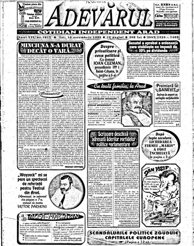 Adevărul, anul VII, nr. 1612, 1995-10-19