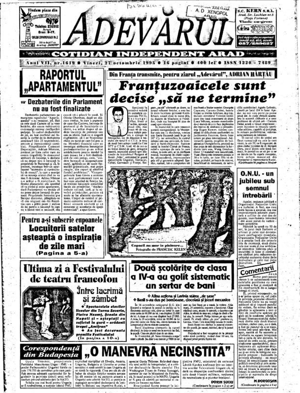 Adevărul, anul VII, nr. 1619, 1995-10-27