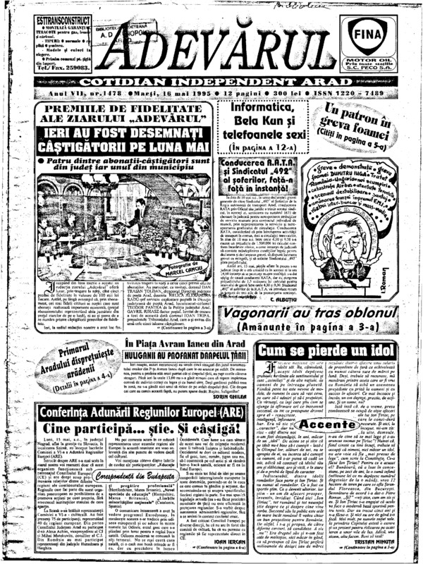 Adevărul, anul VII, nr. 1478, 1995-05-16