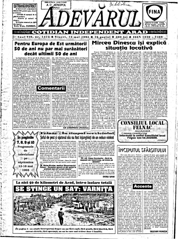 Adevărul, anul VII, nr. 1475, 1995-05-12