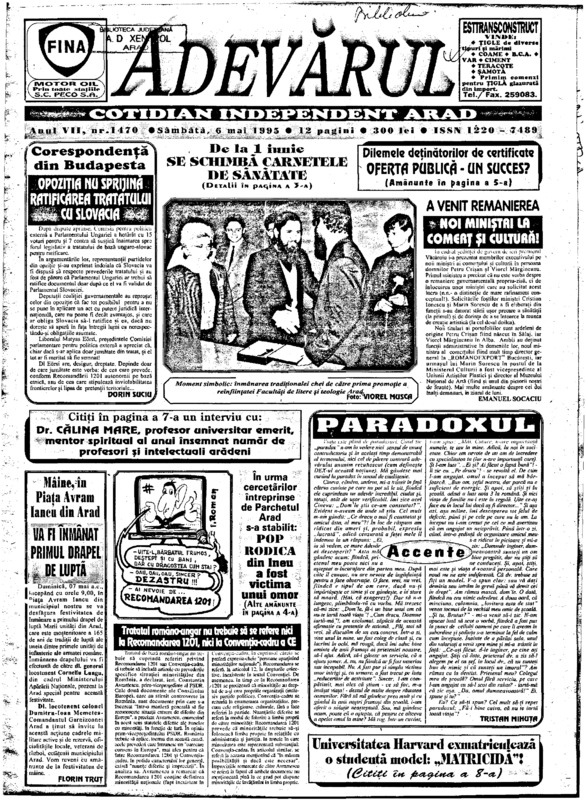 Adevărul, anul VII, nr. 1470, 1995-05-06