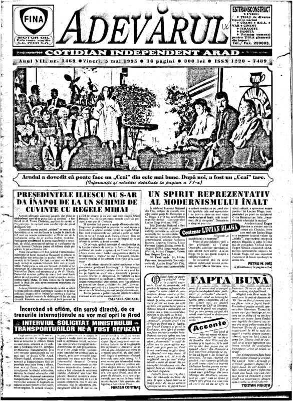 Adevărul, anul VII, nr. 1469, 1995-05-05