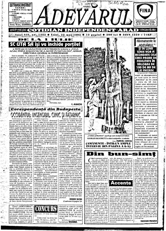 Adevărul, anul VII, nr. 1483, 1995-05-22