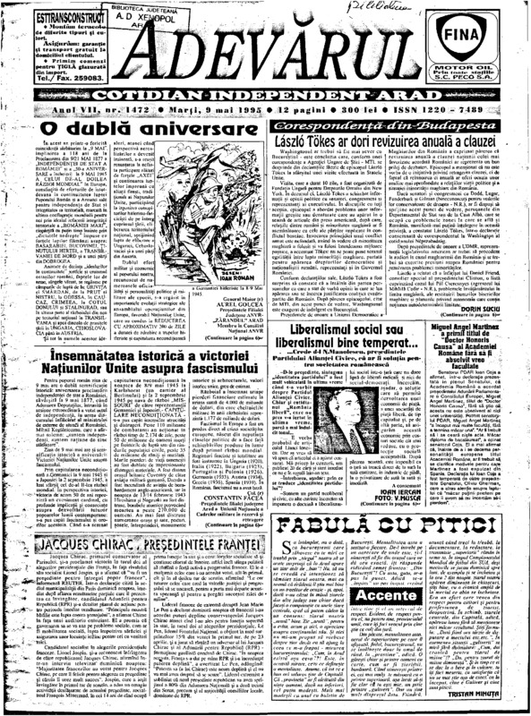 Adevărul, anul VII, nr. 1472, 1995-05-09