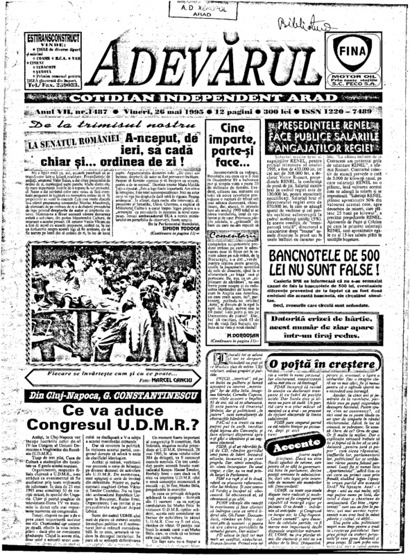 Adevărul, anul VII, nr. 1487, 1995-05-26