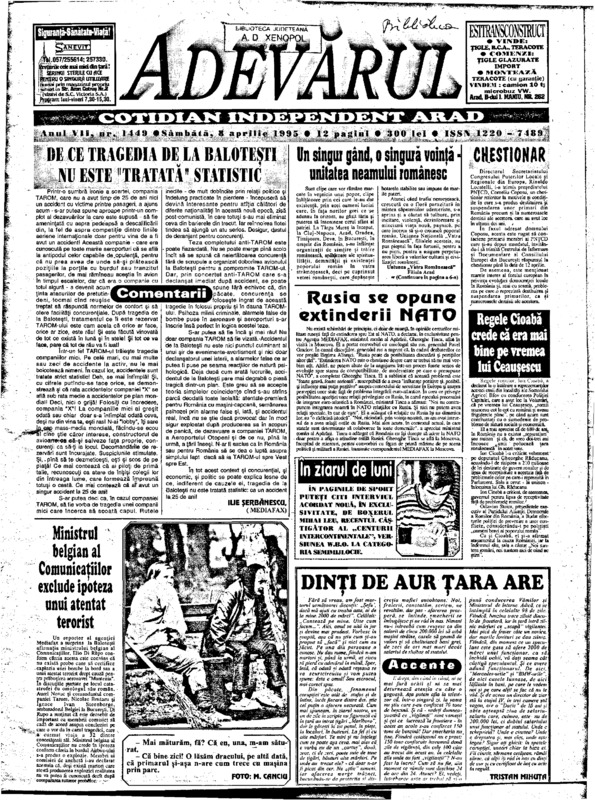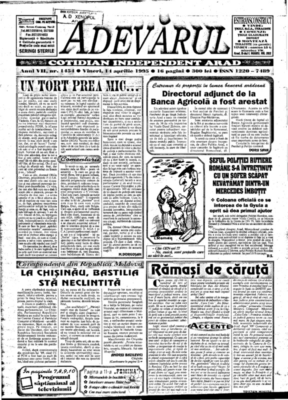 Adevărul, anul VII, nr. 1454, 1995-04-14