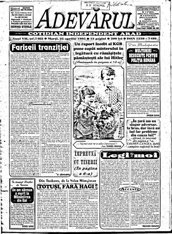 Adevărul, anul VII, nr. 1462, 1995-04-25