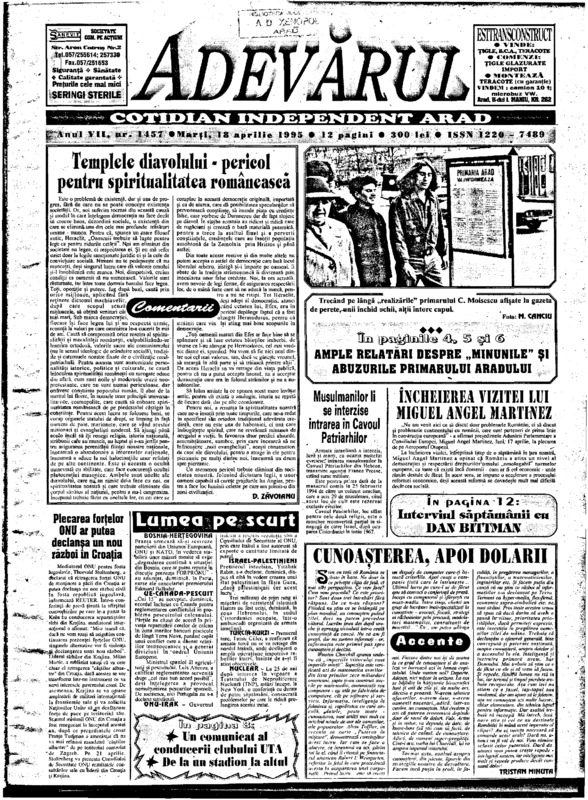 Adevărul, anul VII, nr. 1457, 1995-04-18