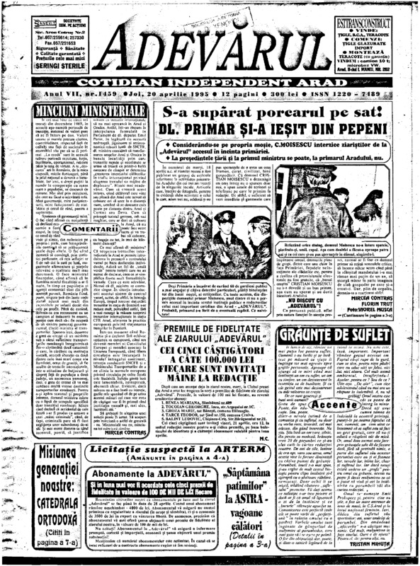 Adevărul, anul VII, nr. 1459, 1995-04-20