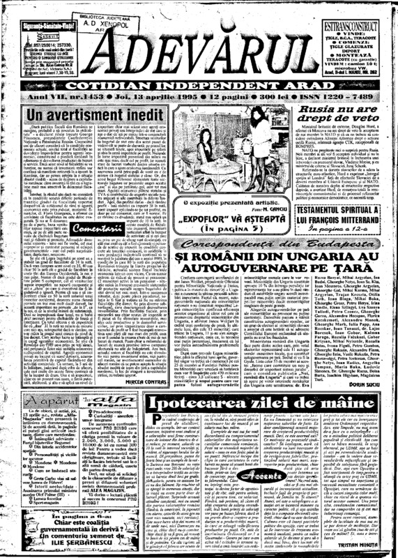 Adevărul, anul VII, nr. 1453, 1995-04-13