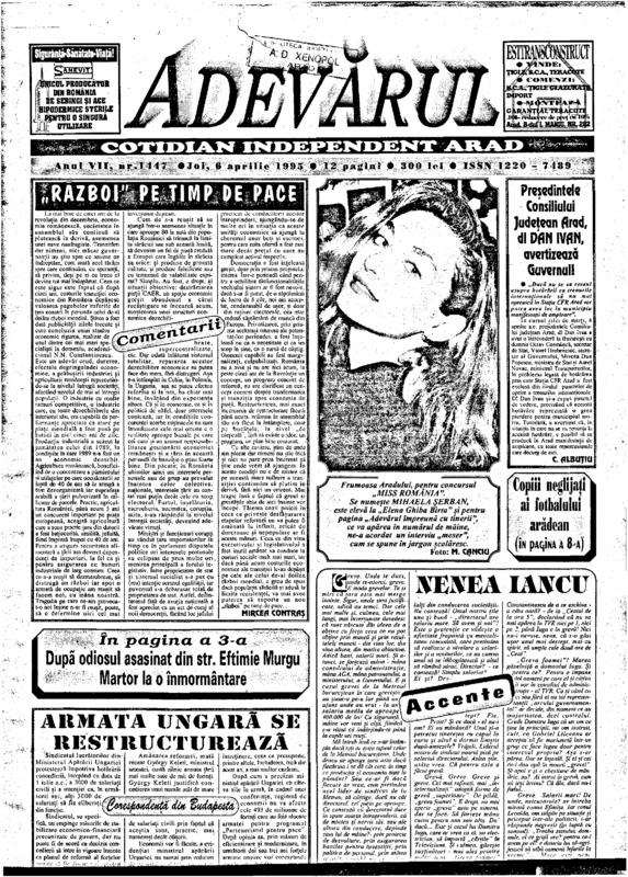 Adevărul, anul VII, nr. 1447, 1995-04-06