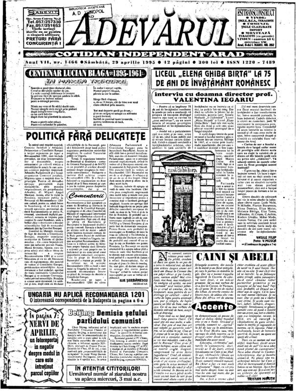 Adevărul, anul VII, nr. 1466, 1995-04-29