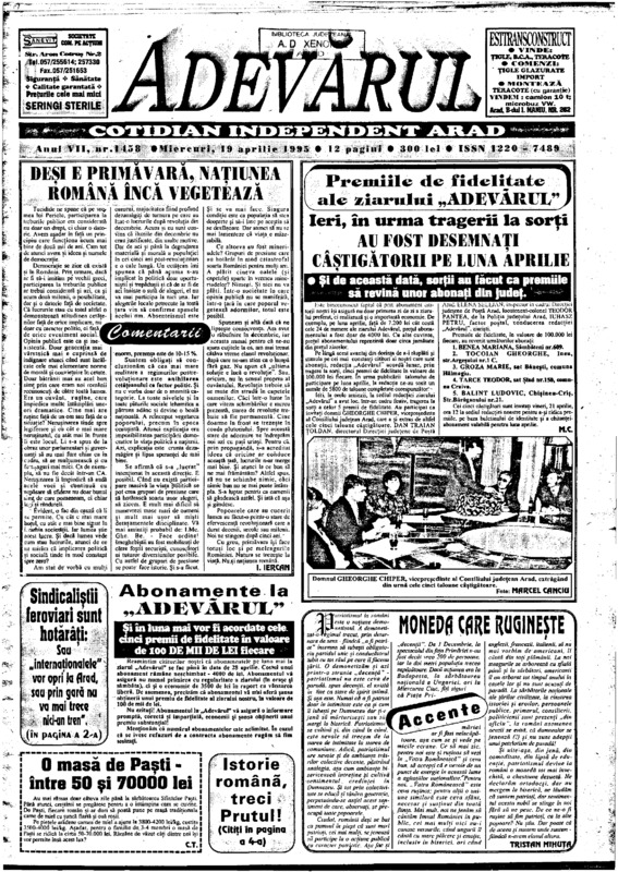 Adevărul, anul VII, nr. 1458, 1995-04-19