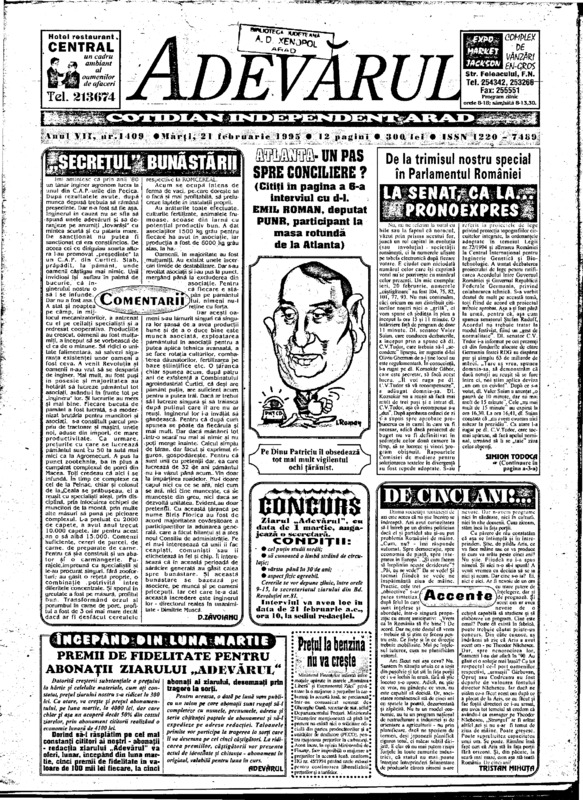 Adevărul, anul VII, nr. 1409, 1995-02-21