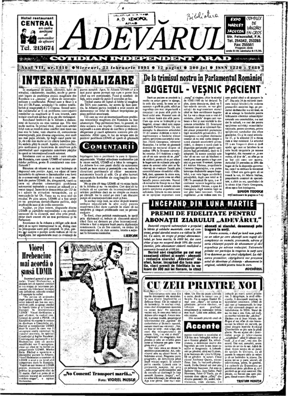Adevărul, anul VII, nr. 1410, 1995-02-22