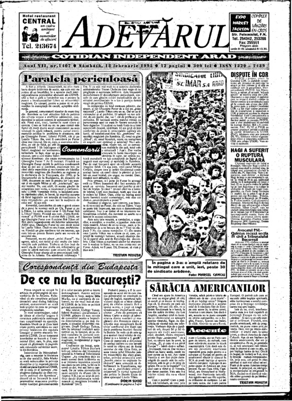 Adevărul, anul VII, nr. 1408, 1995-02-20