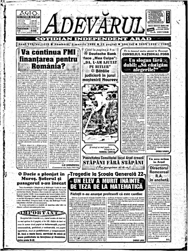 Adevărul, anul VII, nr. 1416, 1995-03-01
