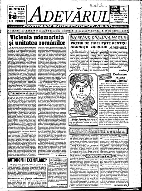 Adevărul, anul VII, nr. 1403, 1995-02-14