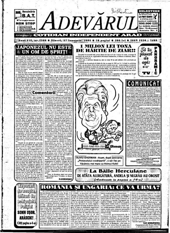 Adevărul, anul VII, nr. 1388, 1995-01-27