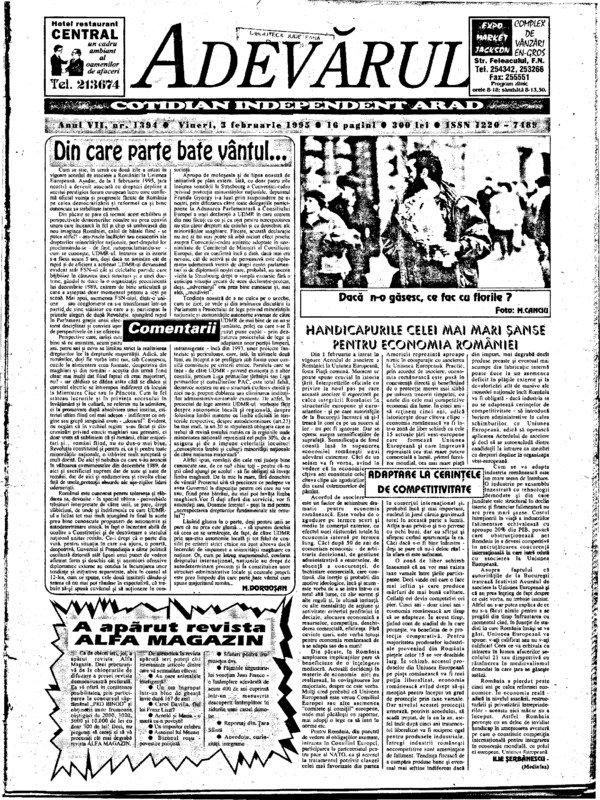 Adevărul, anul VII, nr. 1394, 1995-02-03