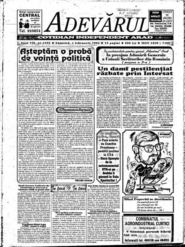 Adevărul, anul VII, nr. 1397, 1995-02-07