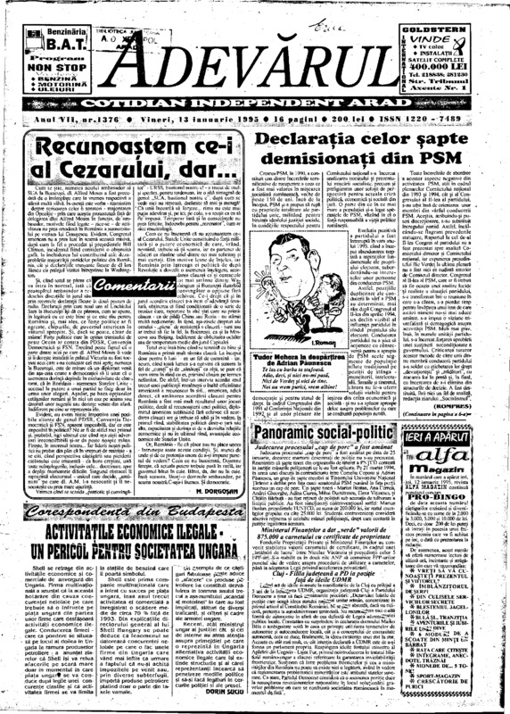 Adevărul, anul VII, nr. 1377, 1995-01-14
