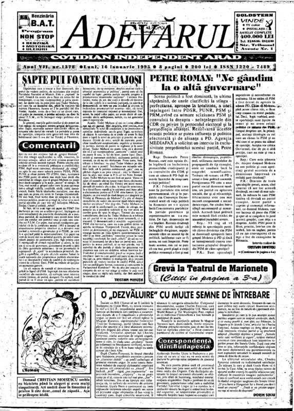 Adevărul, anul VII, nr. 1378, 1995-01-16
