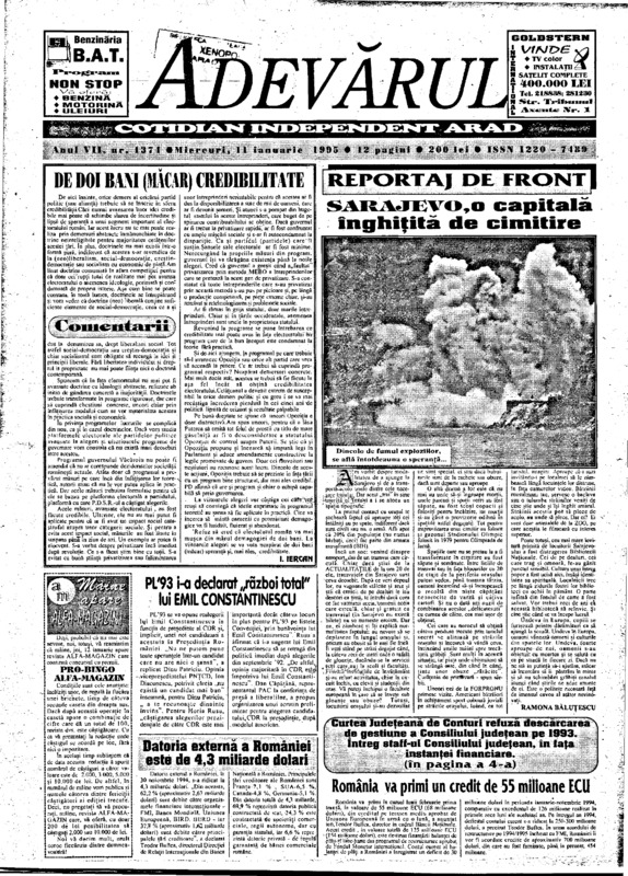 Adevărul, anul VII, nr. 1374, 1995-01-11