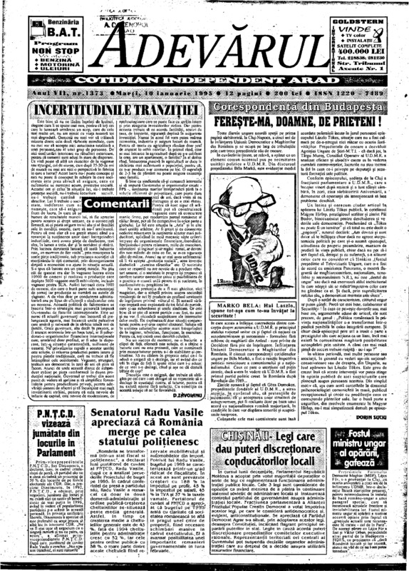 Adevărul, anul VII, nr. 1373, 1995-01-10