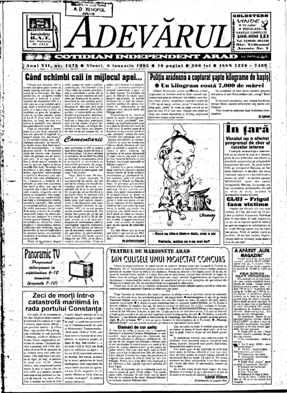 Adevărul, anul VII, nr. 1370, 1995-01-06