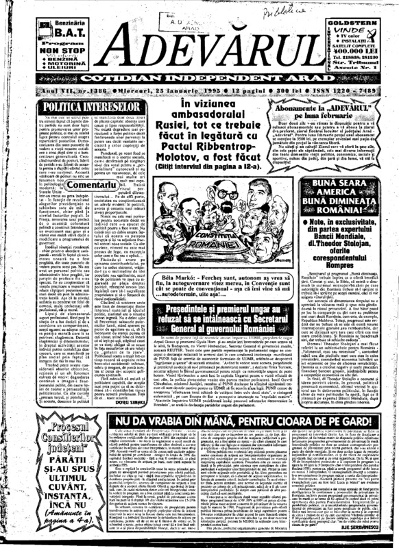 Adevărul, anul VII, nr. 1386, 1995-01-25