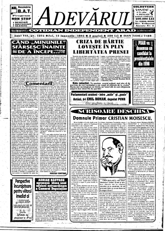 Adevărul, anul VII, nr. 1375, 1995-01-12