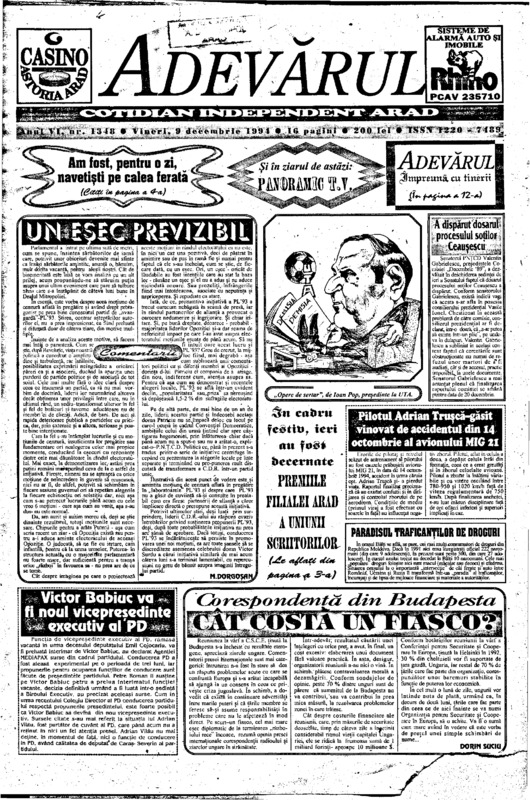 Adevărul, anul VI, nr. 1348, 1994-12-09