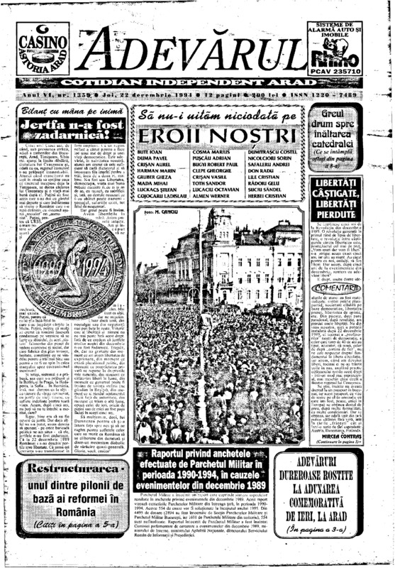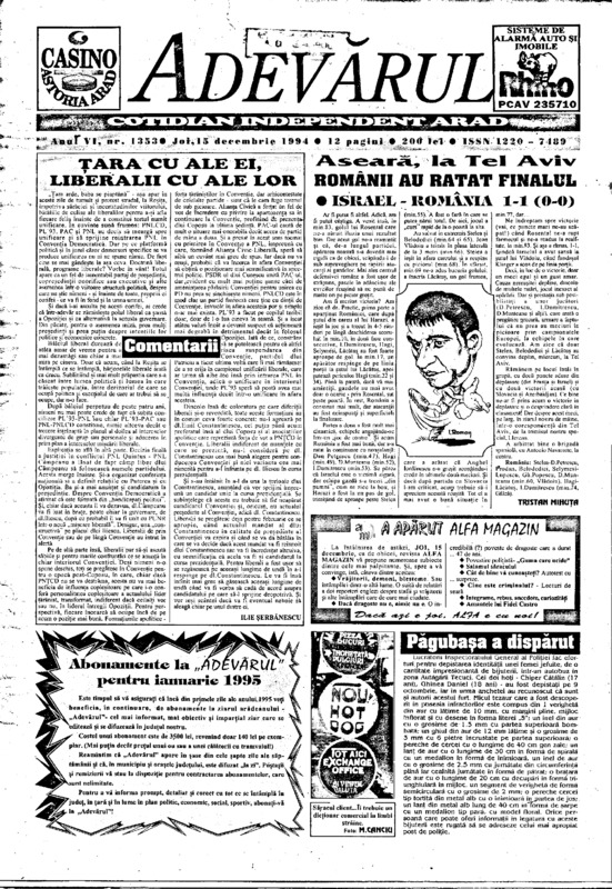 Adevărul, anul VI, nr. 1359, 1994-12-22