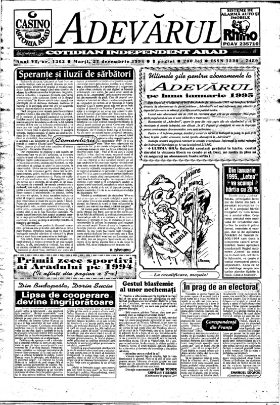 Adevărul, anul VI, nr. 1362, 1994-12-27