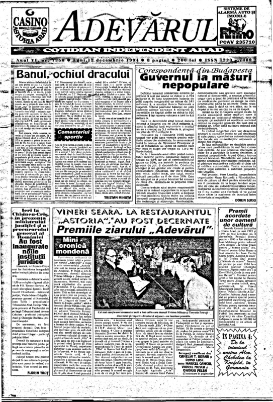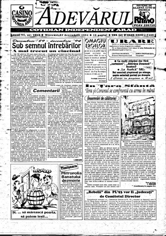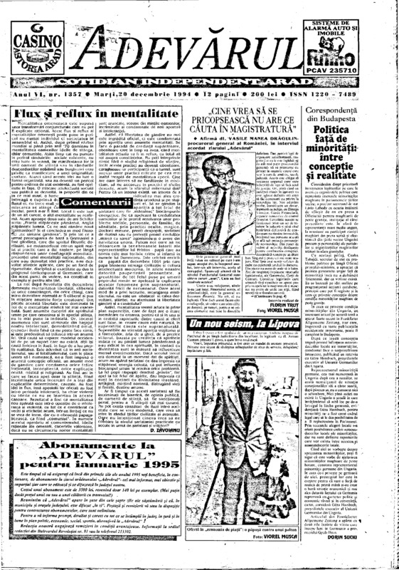 Adevărul, anul VI, nr. 1357, 1994-12-20