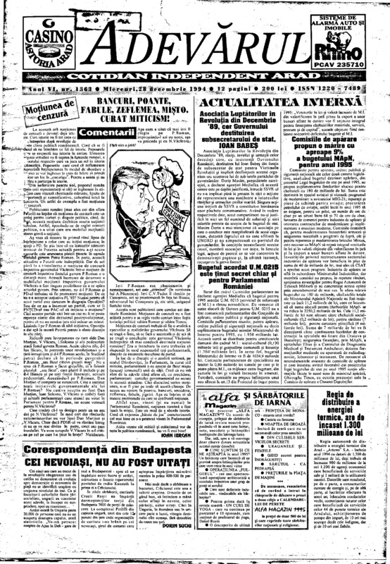 Adevărul, anul VI, nr. 1356, 1994-12-19