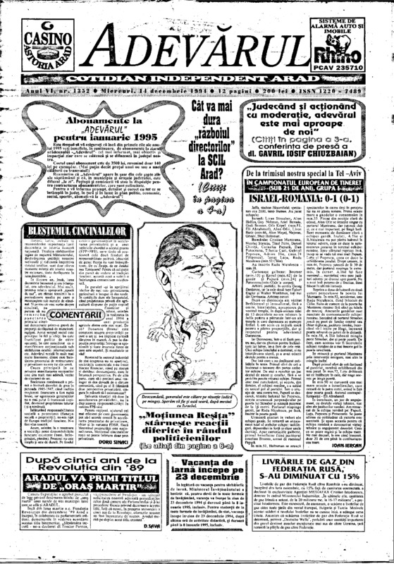 Adevărul, anul VI, nr. 1352, 1994-12-14