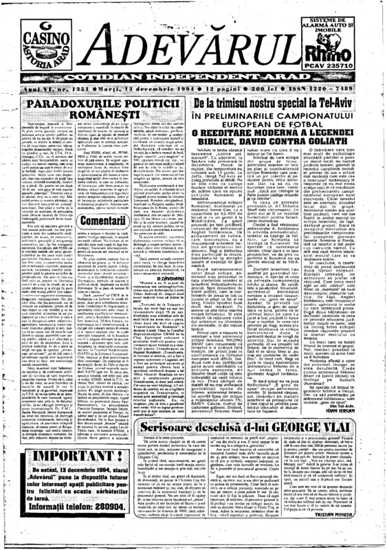 Adevărul, anul VI, nr. 1351, 1994-12-13