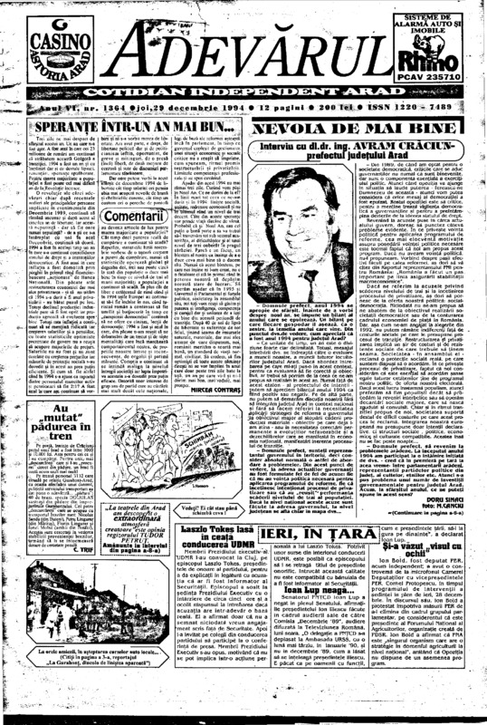 Adevărul, anul VI, nr. 1364, 1994-12-29