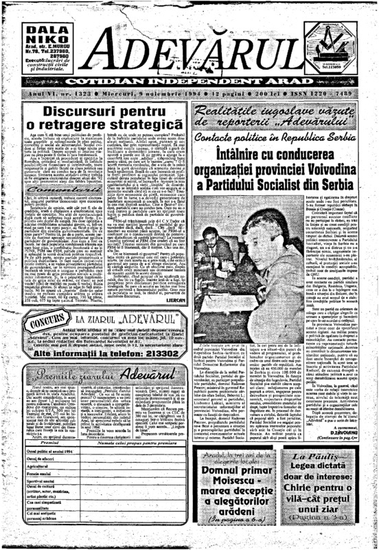 Adevărul, anul VI, nr. 1323, 1994-11-09