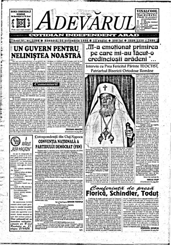 Adevărul, anul VI, nr. 1308, 1994-10-22