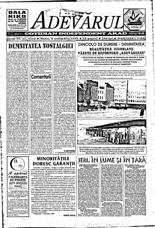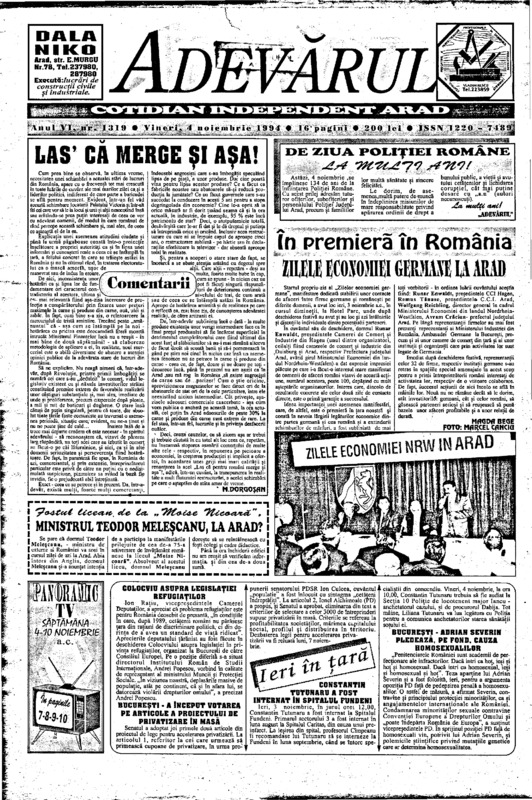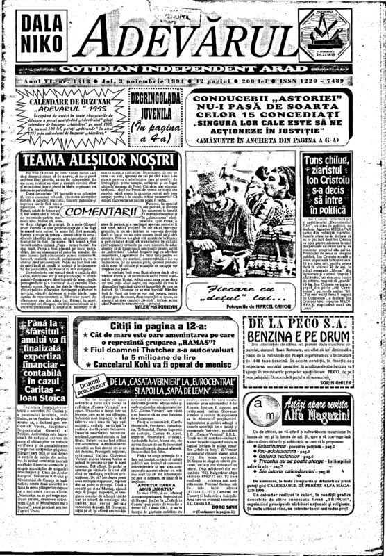 Adevărul, anul VI, nr. 1318, 1994-11-03