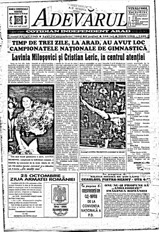 Adevărul, anul VI, nr. 1306, 1994-10-20