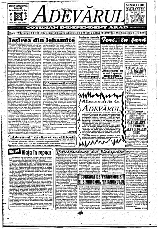 Adevărul, anul VI, nr. 1311, 1994-10-26