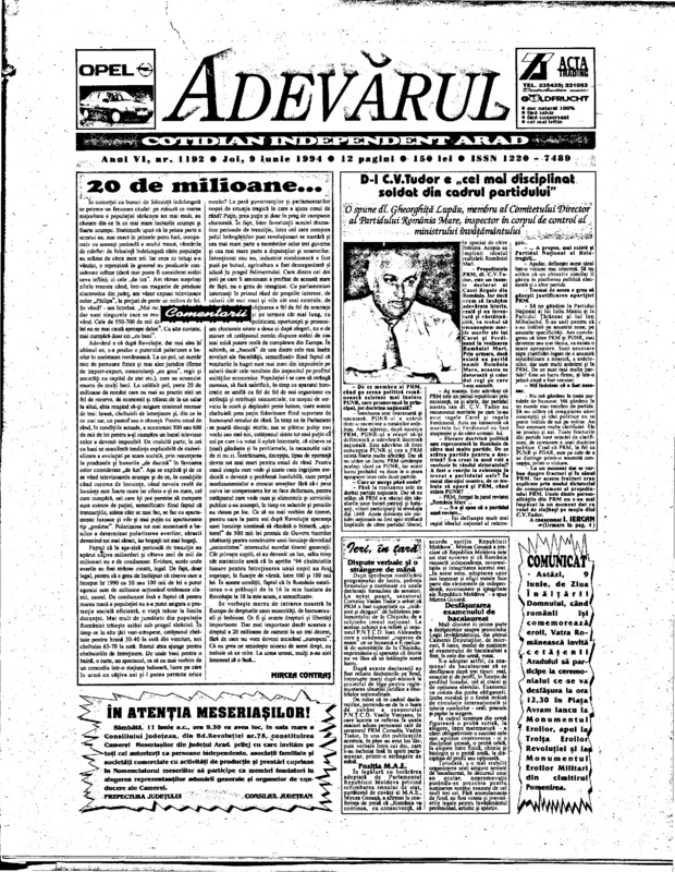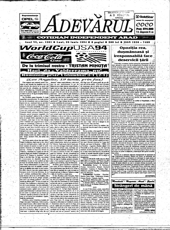 Adevărul, anul VI, nr. 1201, 1994-06-20