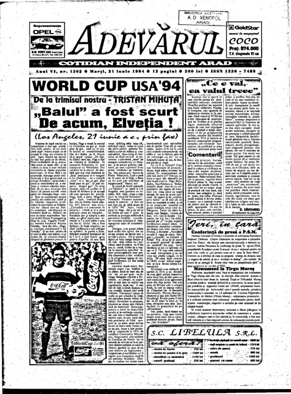 Adevărul, anul VI, nr. 1202, 1994-06-21