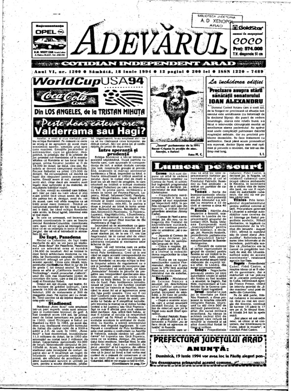 Adevărul, anul VI, nr. 1200, 1994-06-18