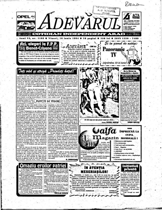 Adevărul, anul VI, nr. 1193, 1994-06-10