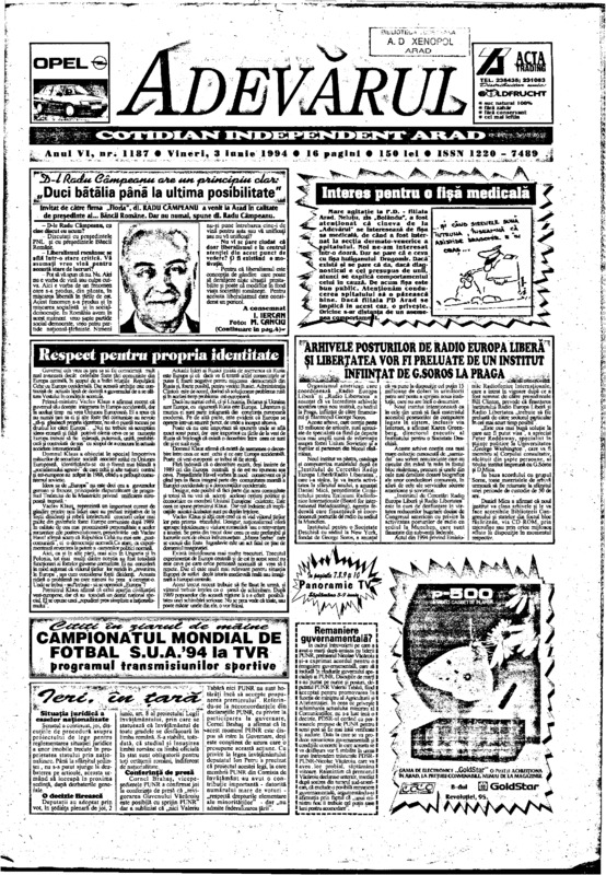 Adevărul, anul VI, nr. 1187, 1994-06-03
